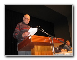 Hospodář MRS MO Břeclav p. Smaženka při čtení zprávy.