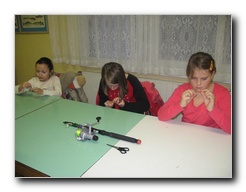 | Dívčí část RK při nácviku techniky vázání háčku |