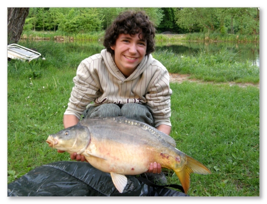 Datum: 25.5.2008, kapr, délka 85 cm, nevážen, foto z mobilu