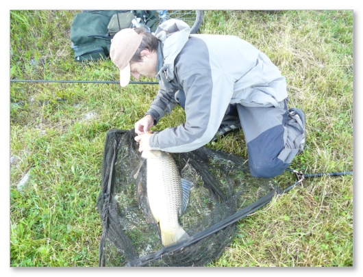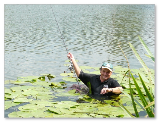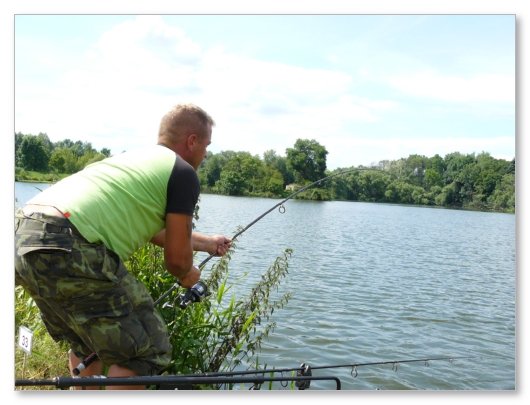 Někteří závodníci neváhali jít za kaprem i do vody