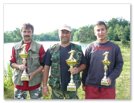 Vítězem se stal p.Michal Šebestík z Břeclavi ( na fotografii uprostřed ), který ulovil 26 kaprů o celkové délce 1196 cm. Druhý v pořadí p. Martin Výleta z Dačic ( vlevo ) přelstil také 26 kaprů ( 1186 cm ) a třetímu p. Janu Mračnovi z Břeclavi ( vpravo ) se podařilo ulovit 18 kaprů ( 1000 cm ).